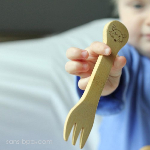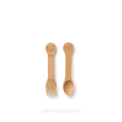 Cet ensemble cuillère + fourchette en bambou accompagne votre enfant pour ses repas.