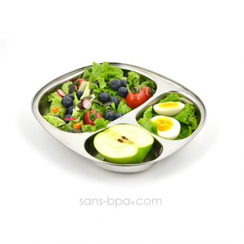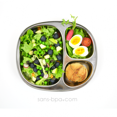 Quel plaisir de proposer un repas complet et équilibré dans cette assiette où chaque compartiment accueille à merveille entrée, dessert et plat principal.