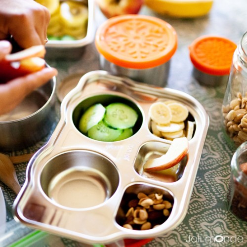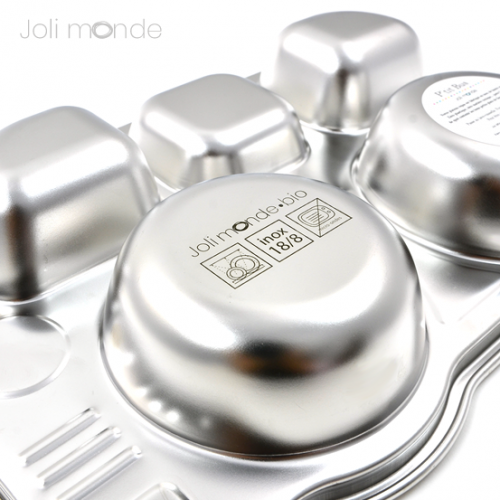 Bien pensés ces 5 compartiments qui permettent de proposer 5 familles d'aliments : fruits & légumes, produits laitiers, protéines, sucres lents & glucides, et un peu de sauce côté lipides ! Voilà de quoi présenter gaiement nos bons petits plats à nos enfants !