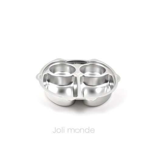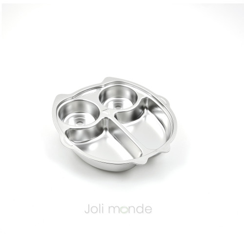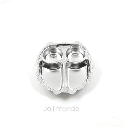 SYLVETTE la chouette - Plateau repas 3 compartiments Kids - JOLI MONDEPlaisir d'un p'tit repas zéro plastique, Matière saine, zéro plastique, Produit durableInox 18/8.23 x 24 cm . Hauteur 4 cm . Poids 250g.Convient à tous les âges, habituellement jusqu'à 6 ans.Vendu à l'unité.