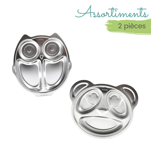 SYLVETTE la chouette - Plateau repas 3 compartiments Kids - JOLI MONDEPlaisir d'un p'tit repas zéro plastique, Matière saine, zéro plastique, Produit durableInox 18/8.23 x 24 cm . Hauteur 4 cm . Poids 250g.Convient à tous les âges, habituellement jusqu'à 6 ans.Vendu à l'unité.